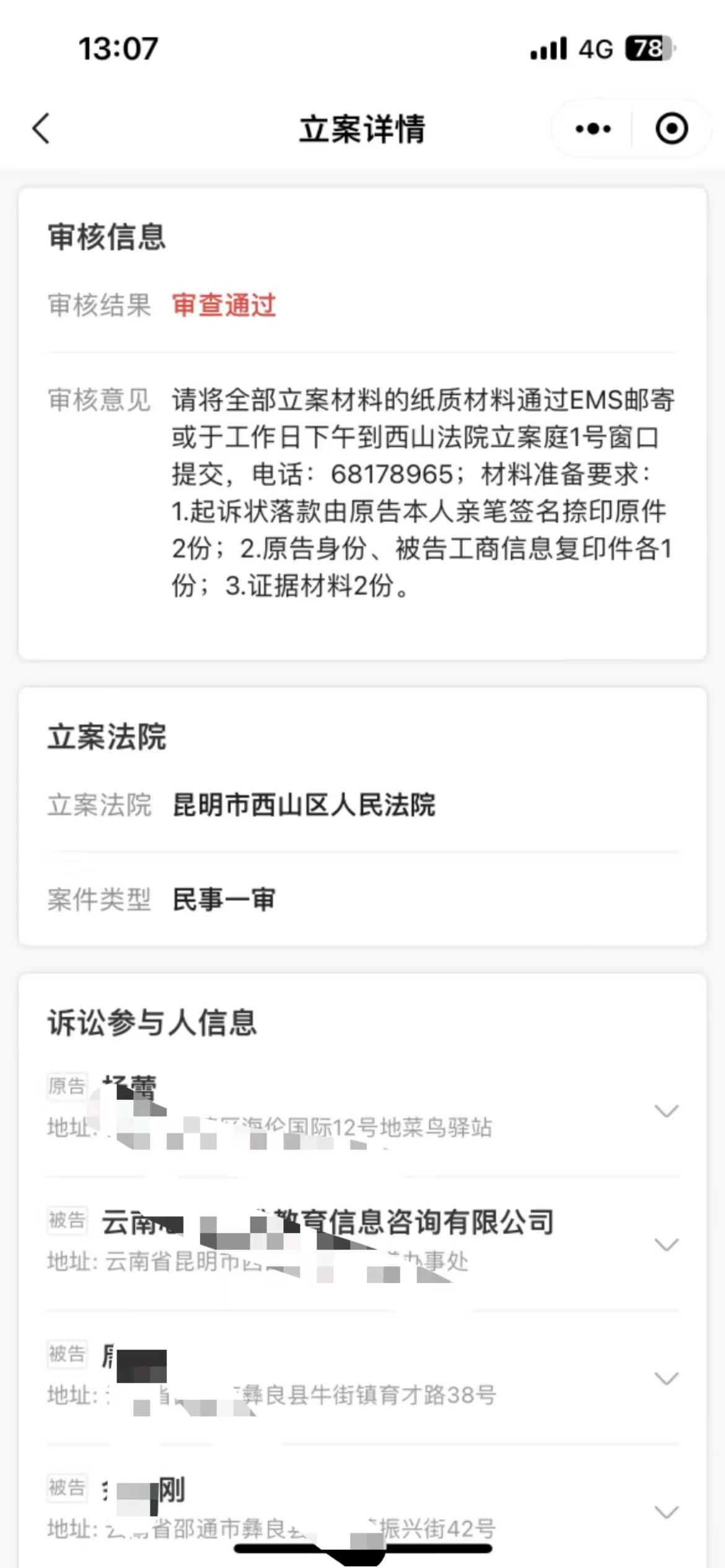 一、第一时间查看法院是否有审核意见,审核意见的内容通常为邮寄纸质材料,包含起诉状和证据材料,邮寄的份数,是否要邮寄送达地址确认书,退款账户确认书等法院提供的文件;有无法院提供的联系方式,立案进程及答疑查询号码或无审核意见。如何遇到审核不通过就根据审核意见修改后重新提交立案;如果是故意不立案直接立案评价差评后重新提交。