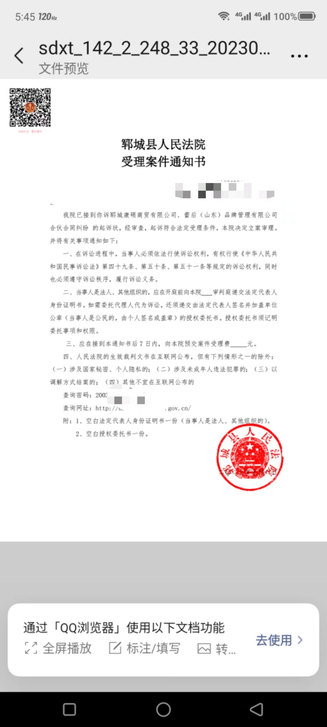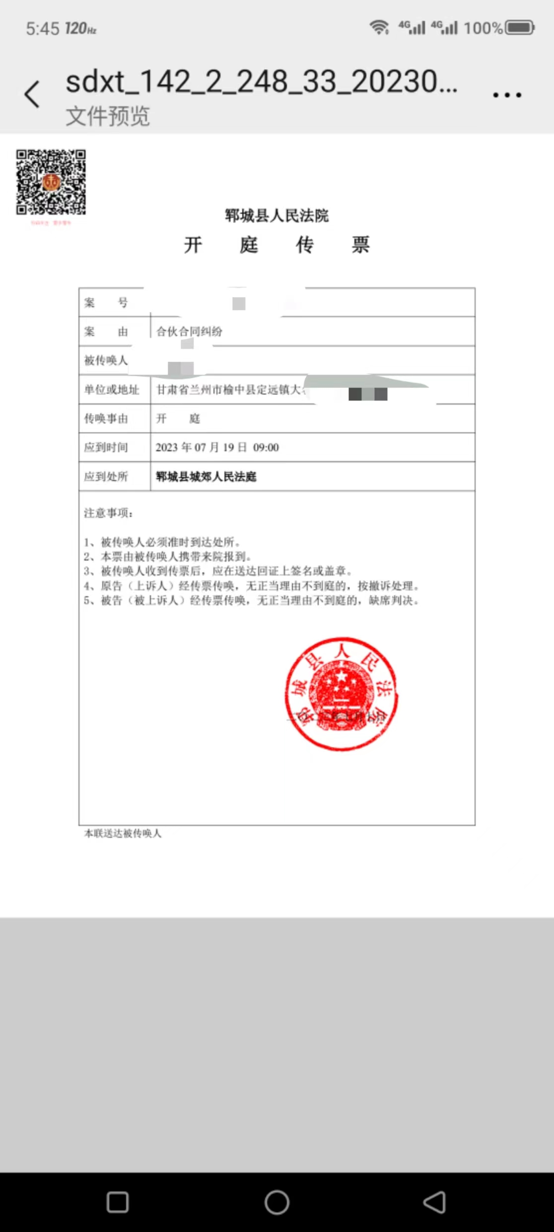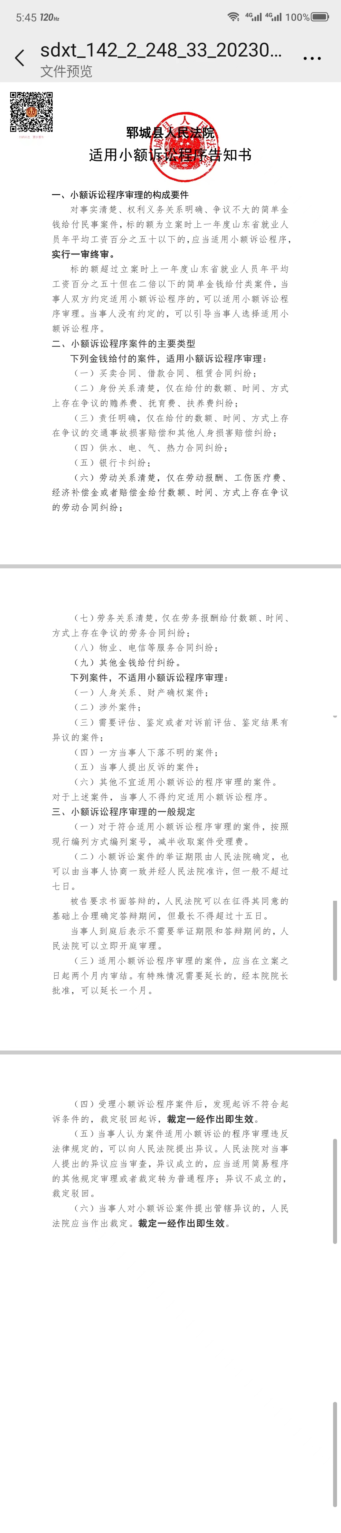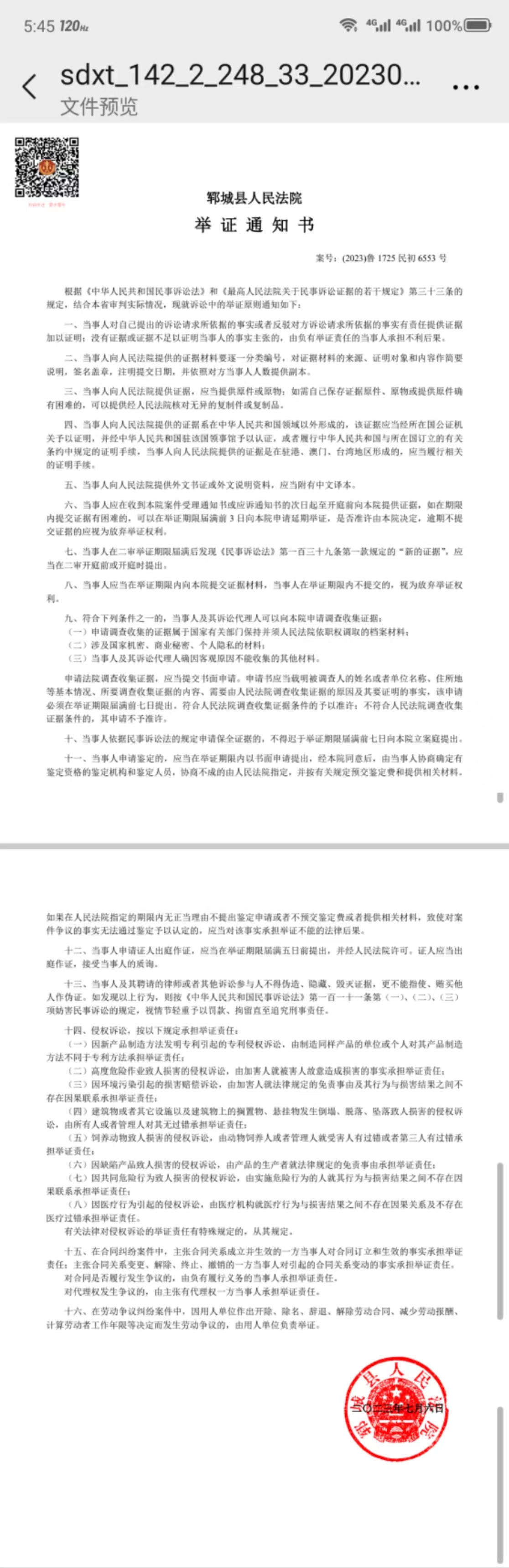 三、正式立案后会有立案通知书,诉讼费缴费通知书,举证通知书,权利义务告知书,诉讼风险告知书等文书法院会送达给你,现在均是优先电子诉讼,即通过网络给你送达,无需纸质通知。需要注意的是诉讼费缴费时间是七天,要在七天内缴费否则法院会按撤诉处理。缴费后,法院会排期,确定开庭时间后就会送达传票,就是开庭的时间地点,传票要保留,线下开庭是需要用到的。收到传票要及时向法官申请线上开庭,如果法官同意线上开庭就可以省掉跑现场开庭的麻烦。