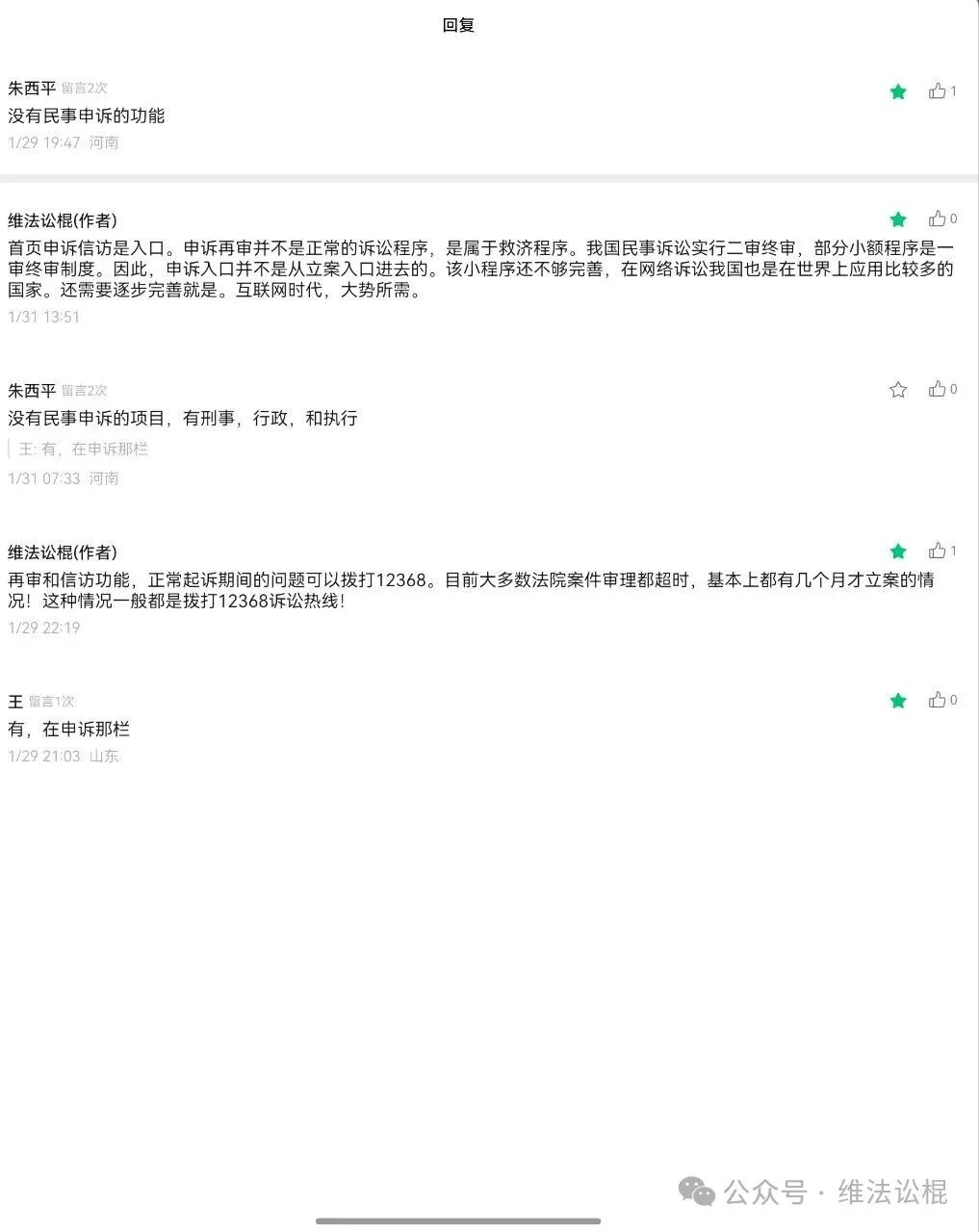 全国诉讼一张网微信小程序人民法院在线服务全国版的留言总结